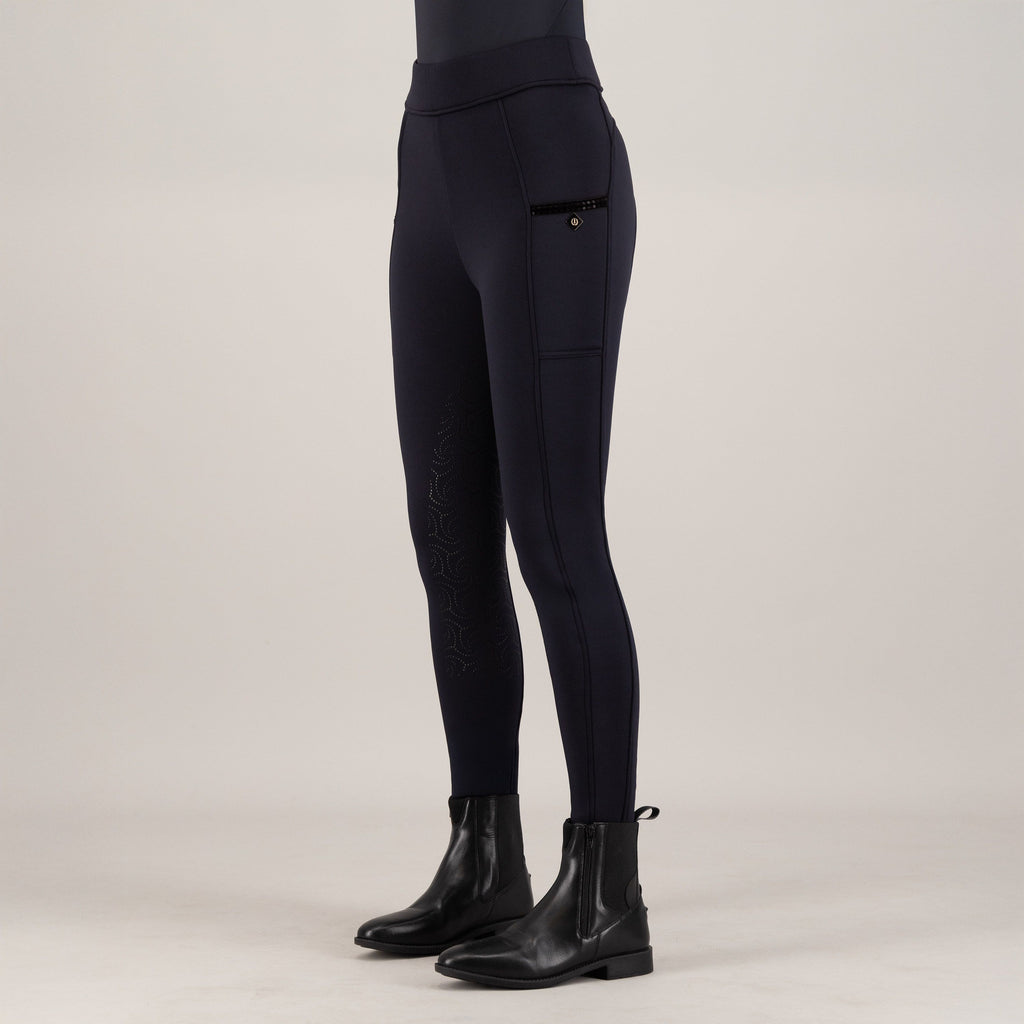 Imagine slipping into these incredibly soft tights – they're brushed inside, so you'll stay wonderfully warm even on cooler days, making every ride a delight. The fancy silicone full grip ensures you've got amazing stability in the saddle, whether you're schooling dressage or hitting the jumping arena. And let's talk about the details! With phone pockets on both sides, adorned with a chic velvet tape and dazzling sequins, your essentials are always within reach, adding a touch of glamour to your equestrian look. The high waistband, featuring a colour-matched IMPERIAL RIDING print at the centre back, offers fantastic support and a flattering silhouette, all while stretchable seams ensure maximum freedom of movement. These aren't just riding tights; they're your statement piece for fun and confidence, perfect for the rider who loves to shine.